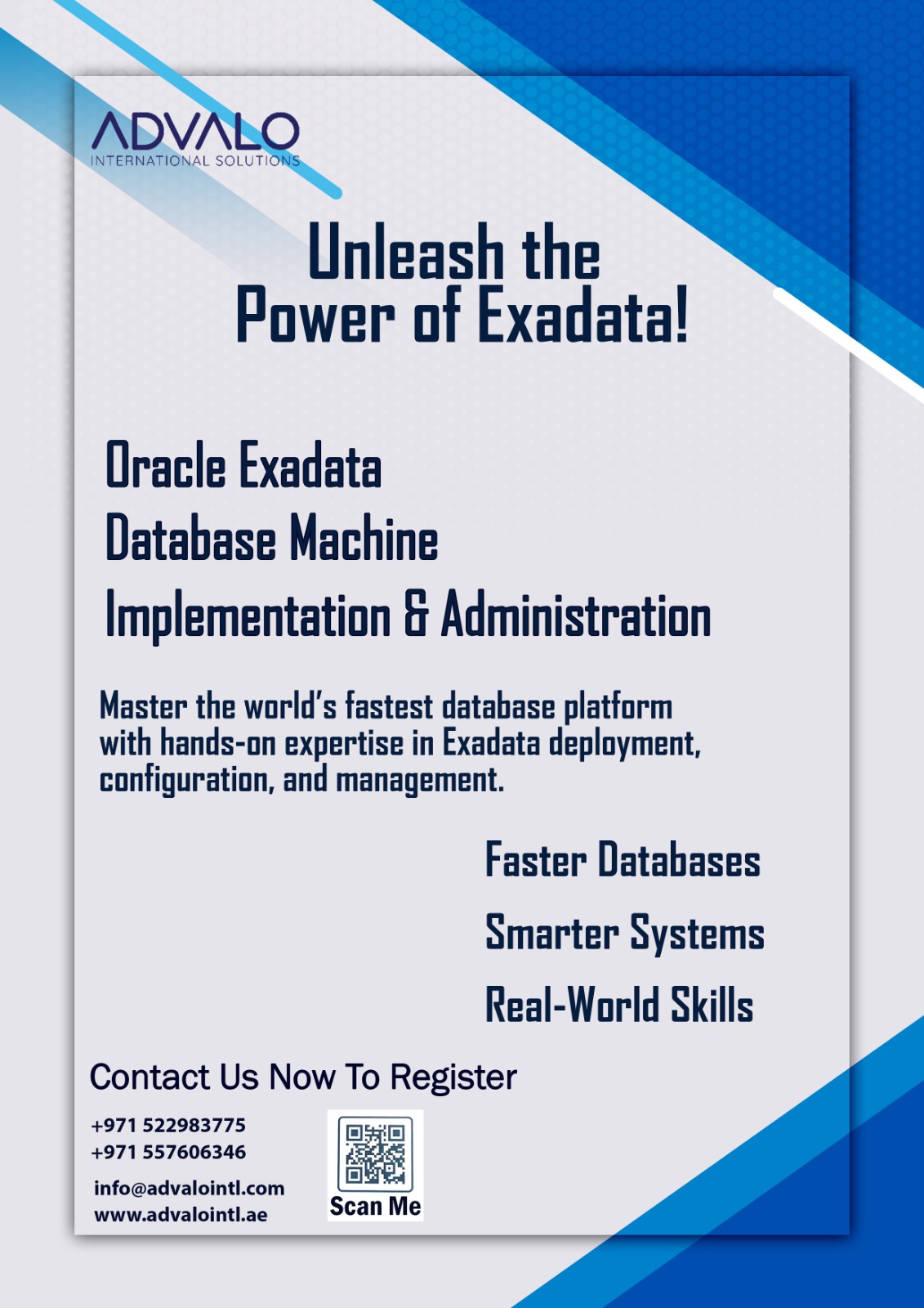 I recently completed Exadata database training in Advalo International Solutions and I am impressed by the in-depth knowledge I gained. The training enhanced my database management skills significantly. Highly recommended for anyone looking to elevate their skills in database administration. Also, I thank the Advalo International Solution staff in Dubai for your support.